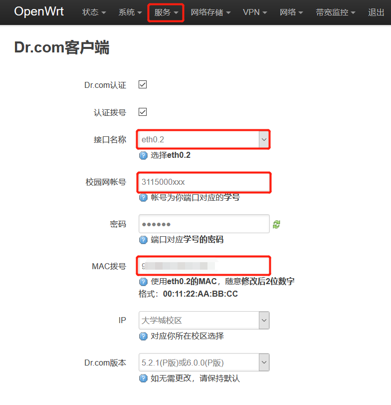 - 配置dr.com客户端使用Dr.com P版认证的才需要配置,这里以