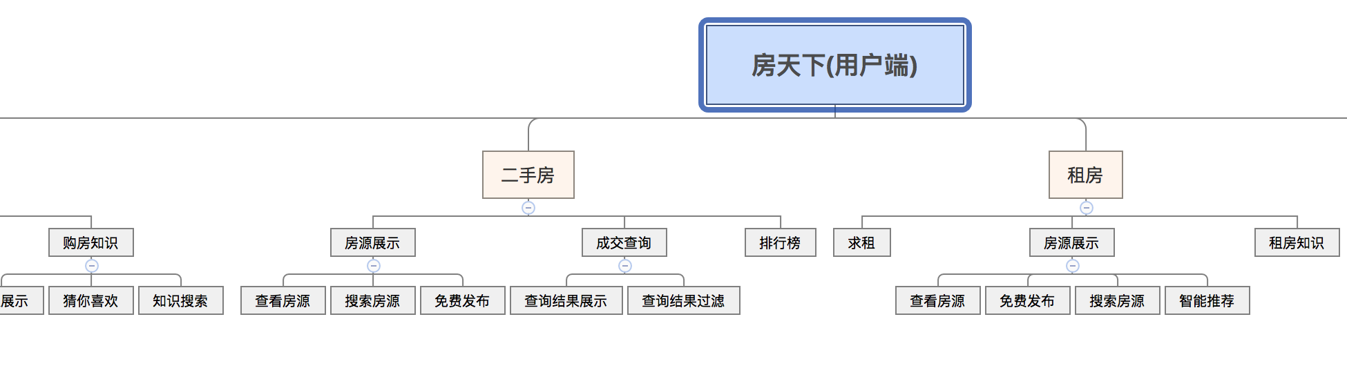 - 模块划分:画思维导图(XMind),每个模块是一个枝节点,每个具体的功能是一个叶节点(用动词表述),需要确保每个叶节点无法再生出新节点,确定每个叶子节点的重要性、优先级和工作量。