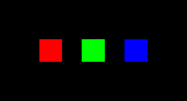 the subtractive primary colors as additive RGB lights and as additive RGB pixels In this image, the CYM color areas in the upper row are actually created on the computer monitor by the visual fusion and additive mixture of two of the three RGB monitor lights. These are physically distinct but too small for the eye to resolve into a dot pattern. The color areas in the lower row are created by the visual fusion of alternating RGB pixels. Each pixel contains three monitor lights, so this doubles the amount of black (unilluminated) area within each color. (Examine the two areas with a magnifying glass.) This doubled black spacing between lights coarsens the screen texture enough to make it visible.