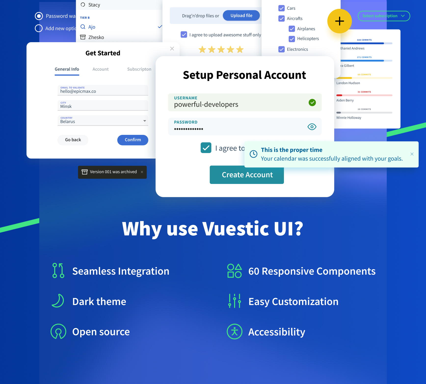 Vuestic UI is forever free and open to contributions. See our issues, contributing guide and join discussions on our Discord to help us improve Vuestic UI experience.