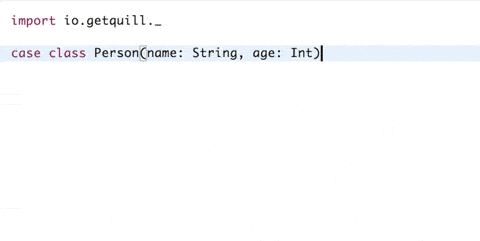 2. Quoted DSL: Queries are defined inside a quote block. Quill parses each quoted block of code (quotation) at compile time and translates them to an internal Abstract Syntax Tree (AST)