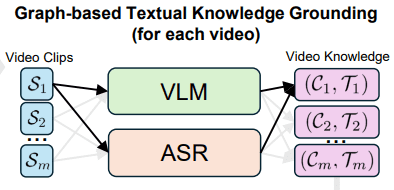 - Graph-based Textual Knowledge Grounding – builds a structured graph of entities and relationships extracted from video transcripts and captions.