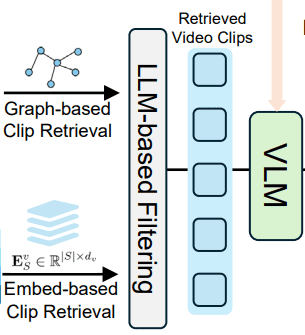 - Graph-based Clip Retrieval: Uses the knowledge graph to find semantically related clips (via entity and relation links).