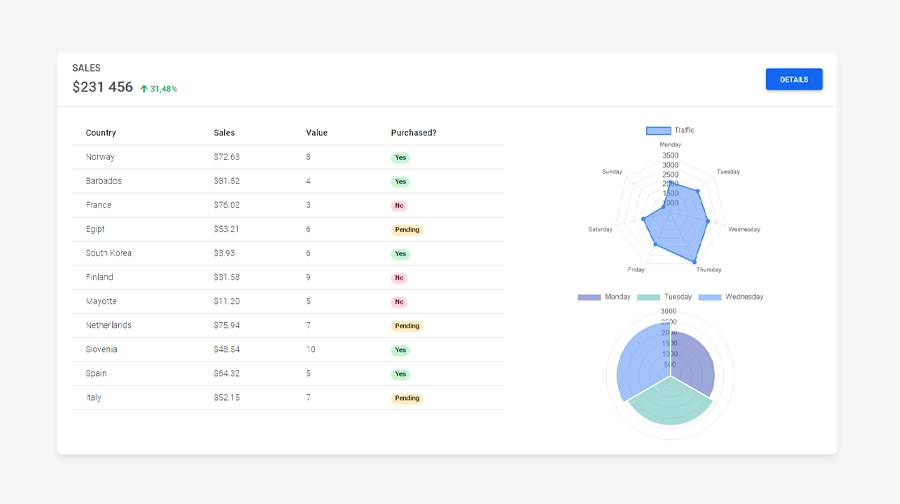 Responsive Admin blocks built with the latest Bootstrap 5 and stunning Material Design. Create your own Admin with various sections for the navigation, tables, charts and more.